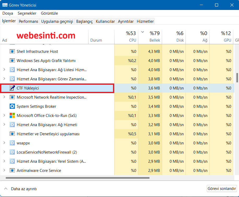 Normalde, CTF Yükleyici arka planda çalışırken sistem kaynaklarını fazla tüketmez. Ancak, bazı durumlarda CPU veya RAM kullanımında artışlar görülebilir. Bu gibi durumlarda, aşağıdaki adımları deneyebilirsiniz: