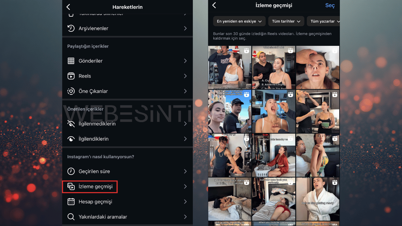 Adam Mosseri’nin açıklamasına göre, kullanıcılar profil bölümünden Ayarlar → “Hareketlerin” / “Your Activity” altındaki “İzleme geçmişi” / “Watch History” kısmına erişerek daha önce izledikleri tüm Reels videolarını görebilecek.