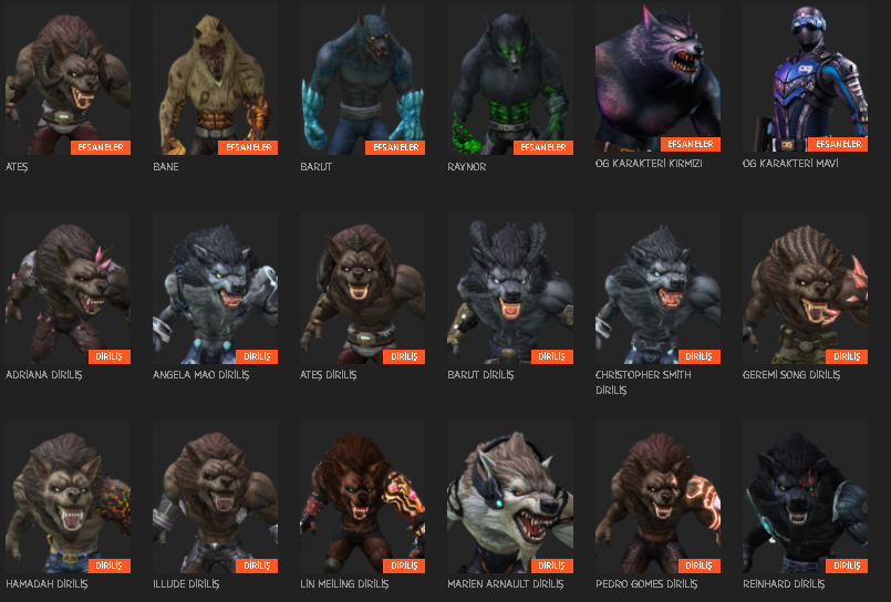 | Deli Kurt | 200 HP / 99 YP | Hedef çekme yeteneği ile rakibi hızla kendine çeker, hızlı öldürmeye uygundur | 400 SP |