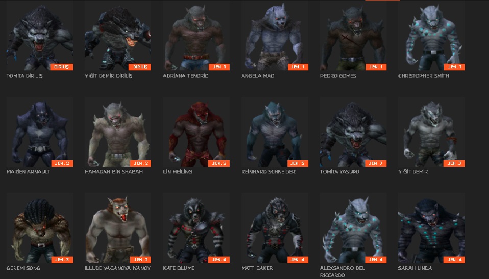 | Ateş Kurt | 850 HP / 150 YP | En dayanıklı kurt, sağ tuş ile korunma: standart silahlara karşı mermi işlemez, diğer silahlarda hasarı %50 düşürür | Yok |